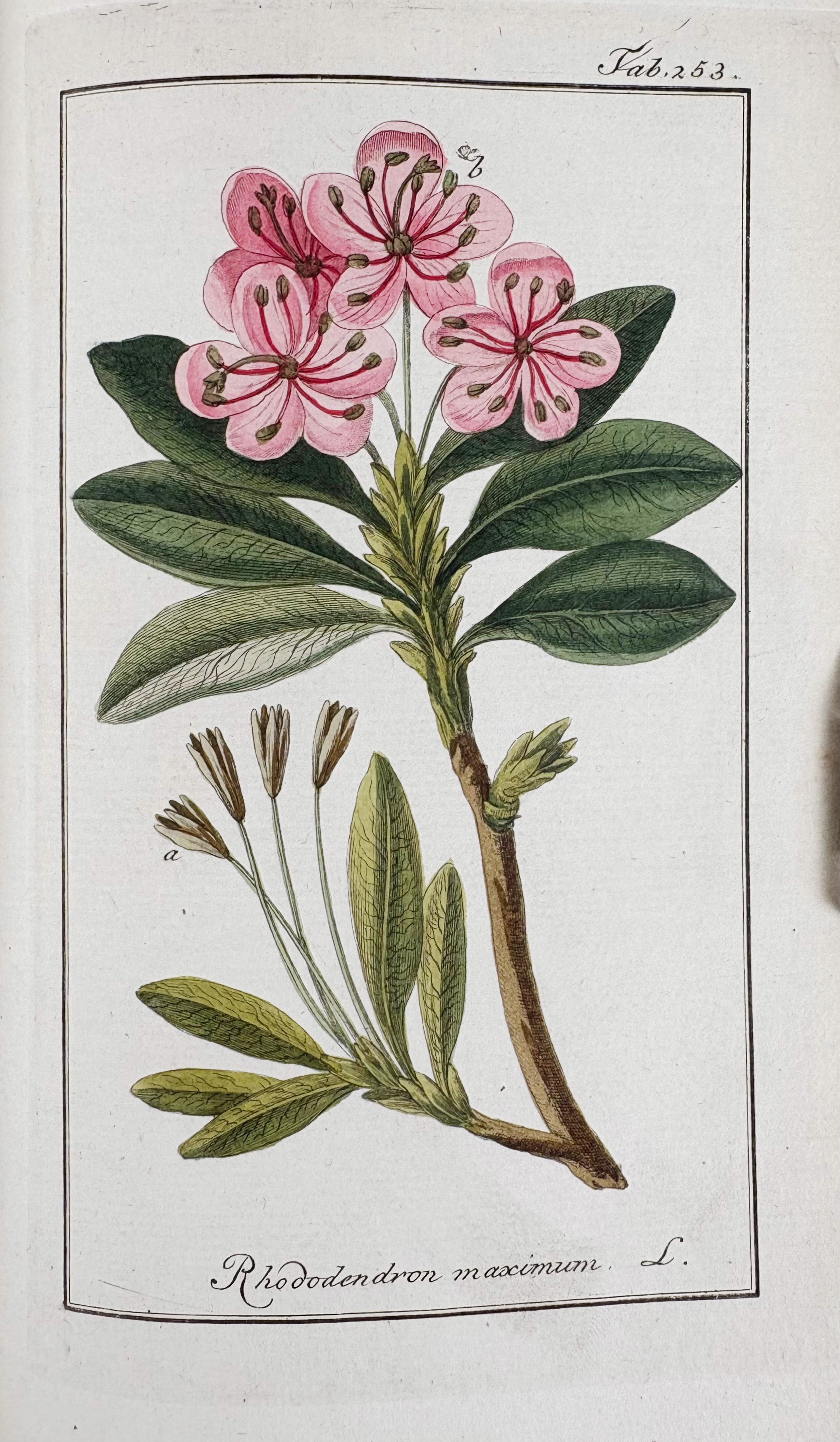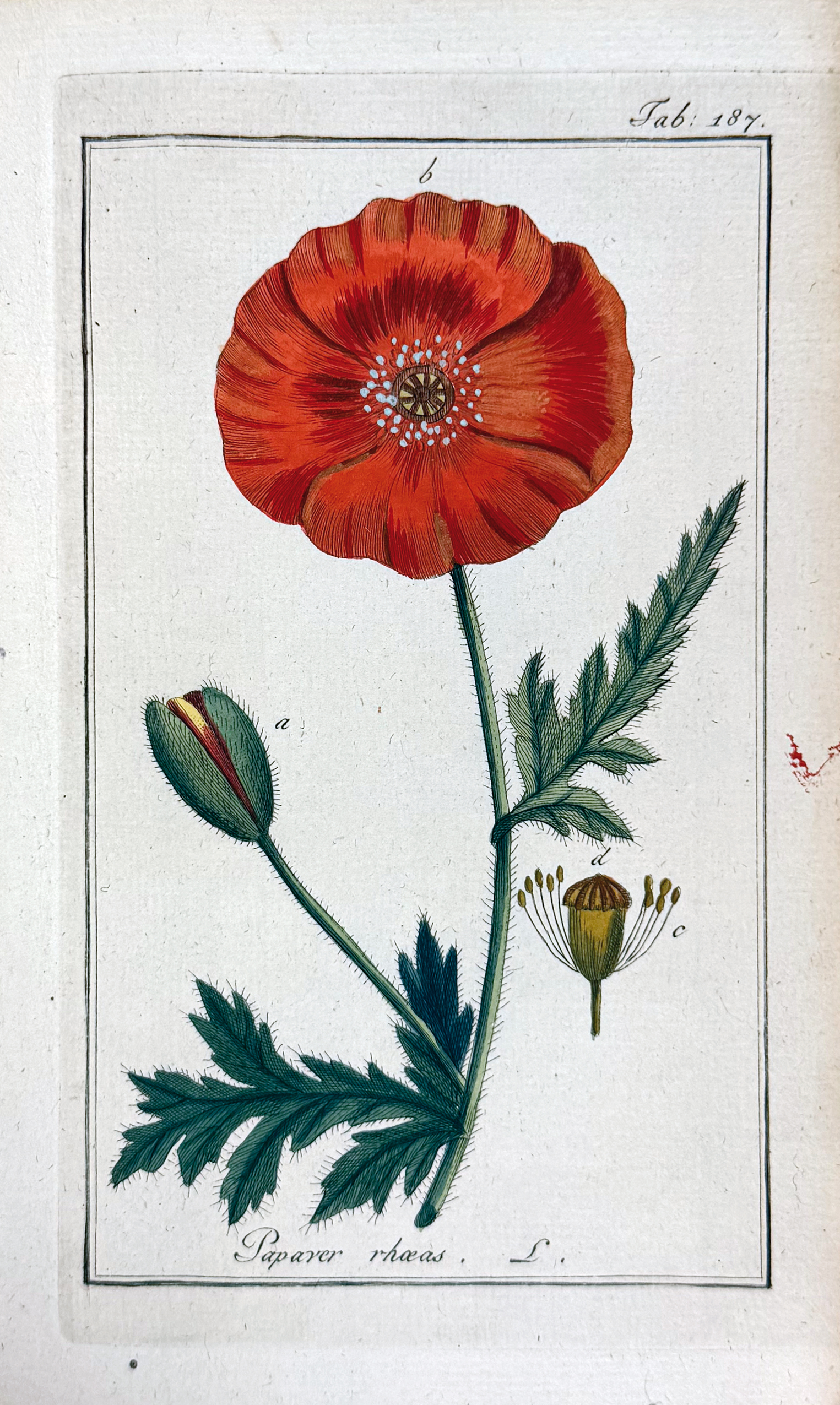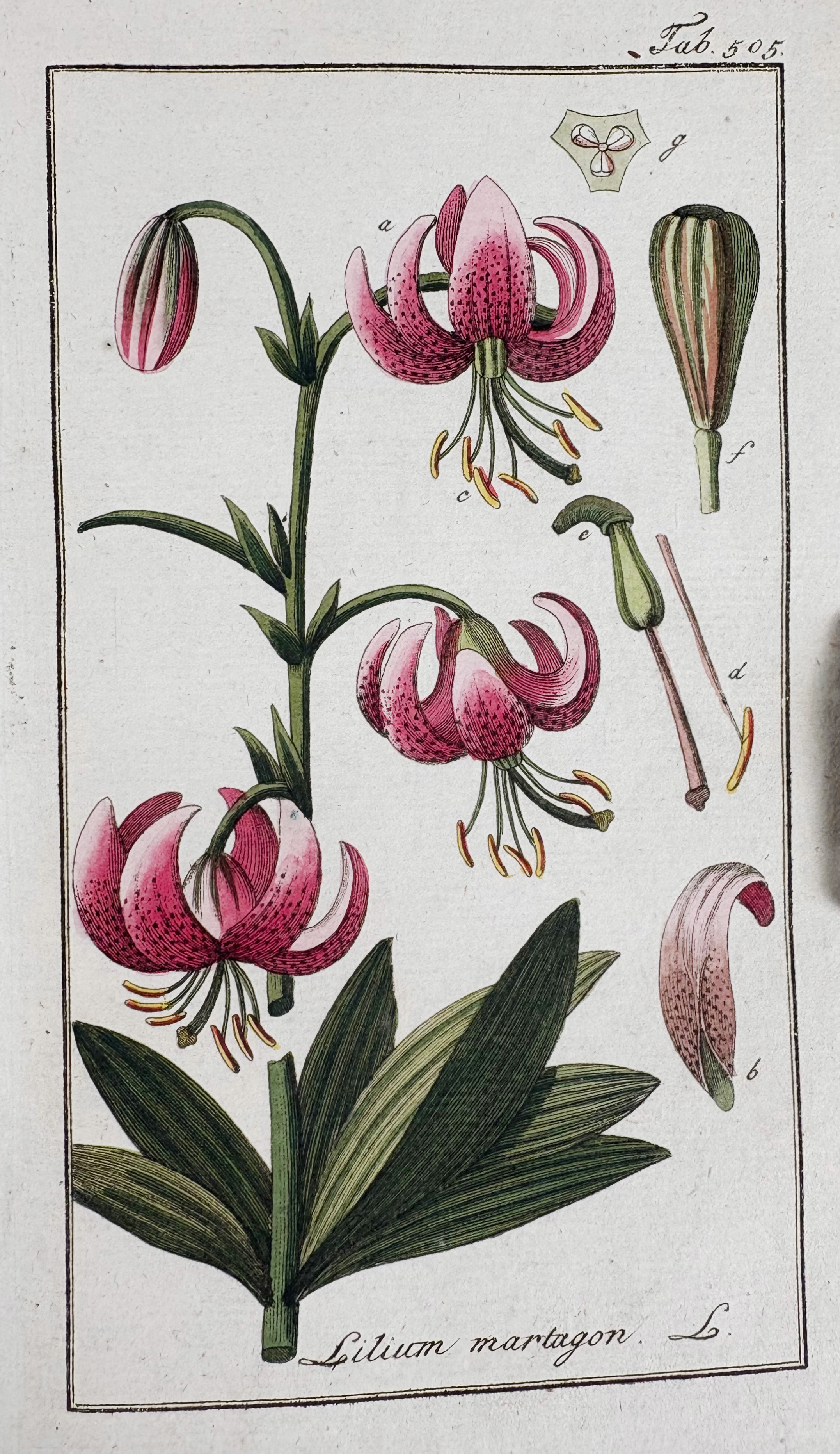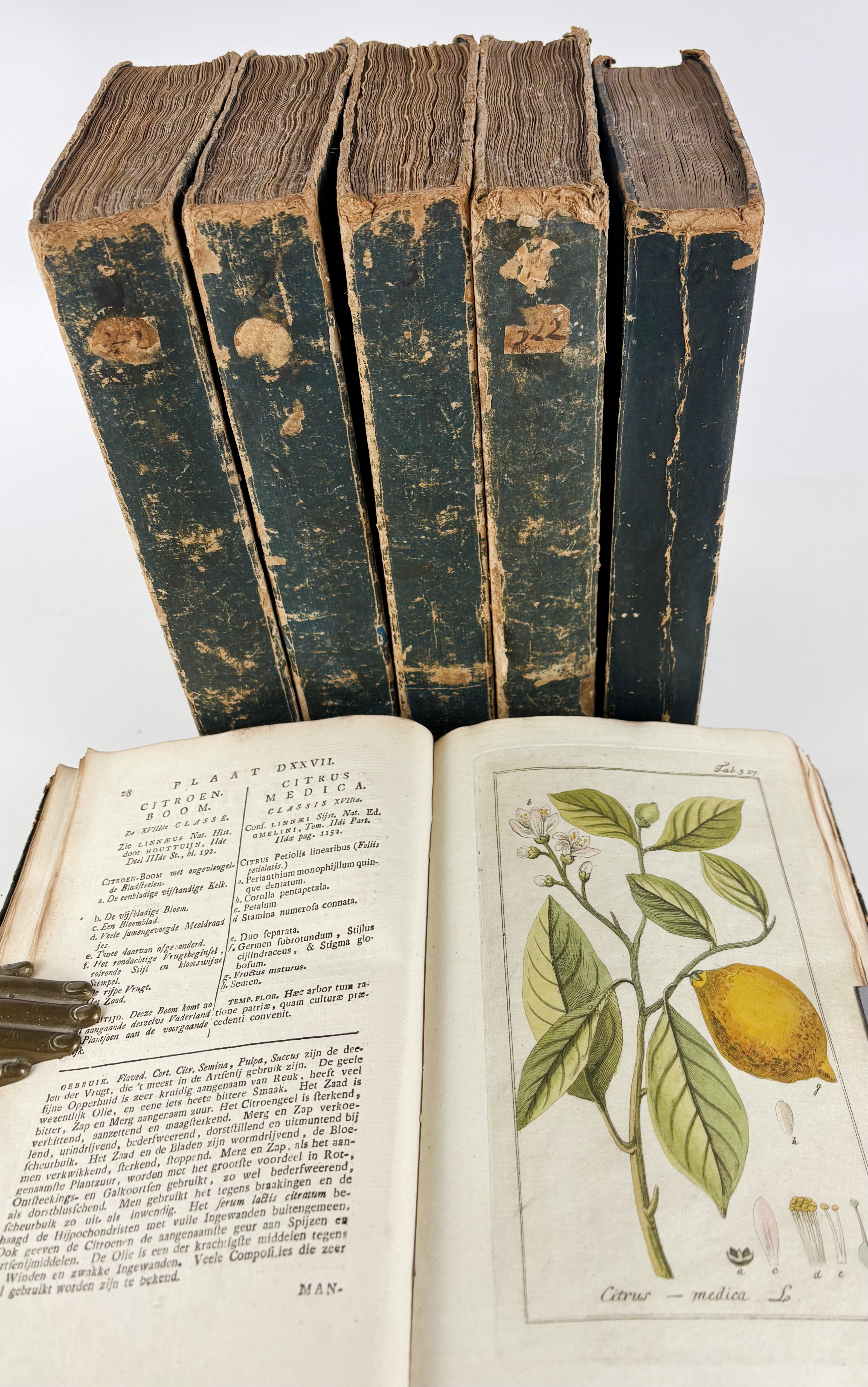 PHARMACOLOGY -- (ZORN, J.). Afbeeldingen der artseny-gewassen met derzelver Nederduytsche en Latynsche beschryvingen. (Transl. and ed. by D.L. Oskamp, M. Houttuijn and J.C. Krauss). Amst., J.C. Sepp & Zn., 1796-1800. 6 vols. W. engr. ti. to each vol. & 600 fine full-p. engr. after Thanner (a.o.?), all superbly cold. by hand, and all texts called for. Cont. blue brds. (Binds. a bit worn, interior slightly age-toned, but a fine set).
