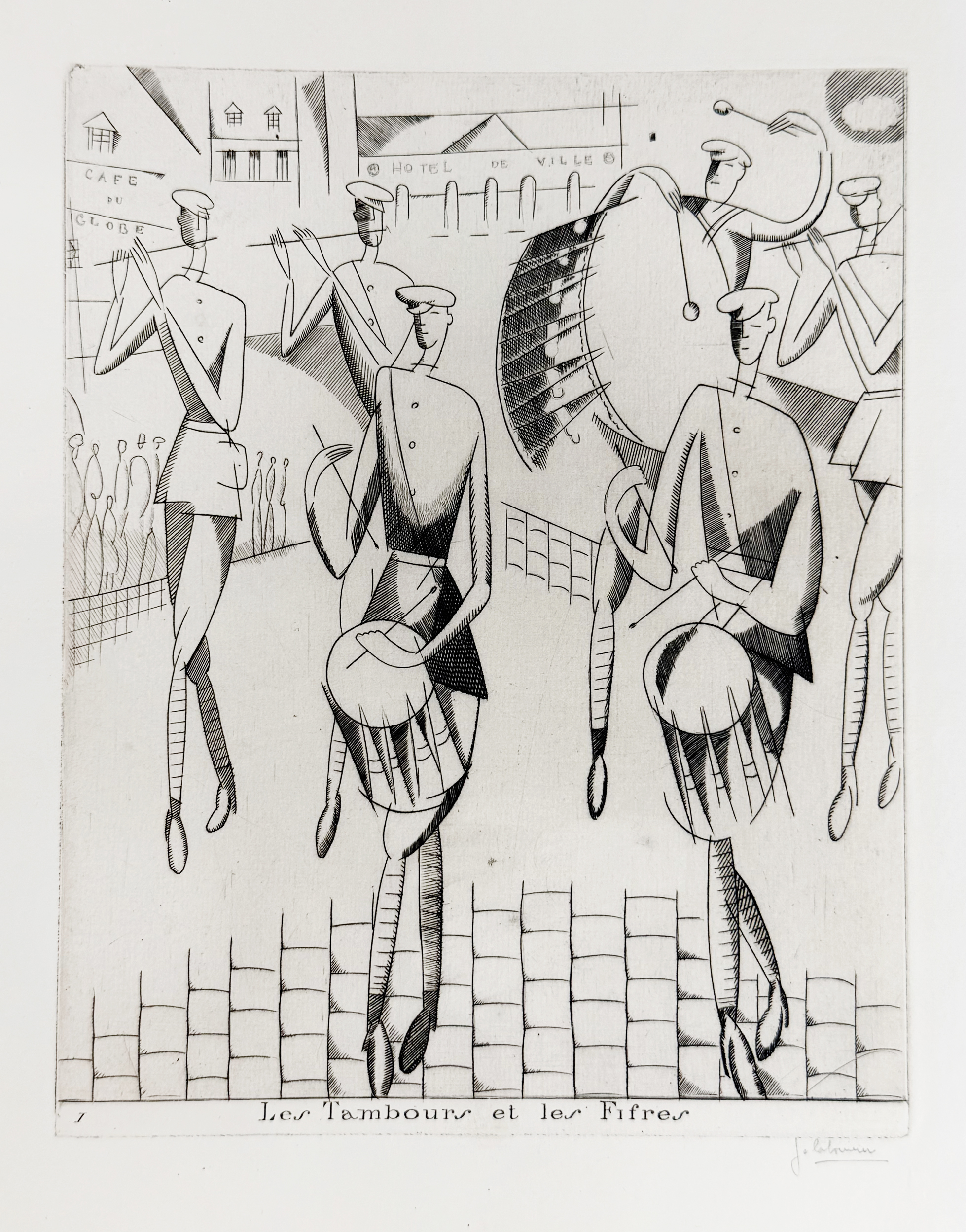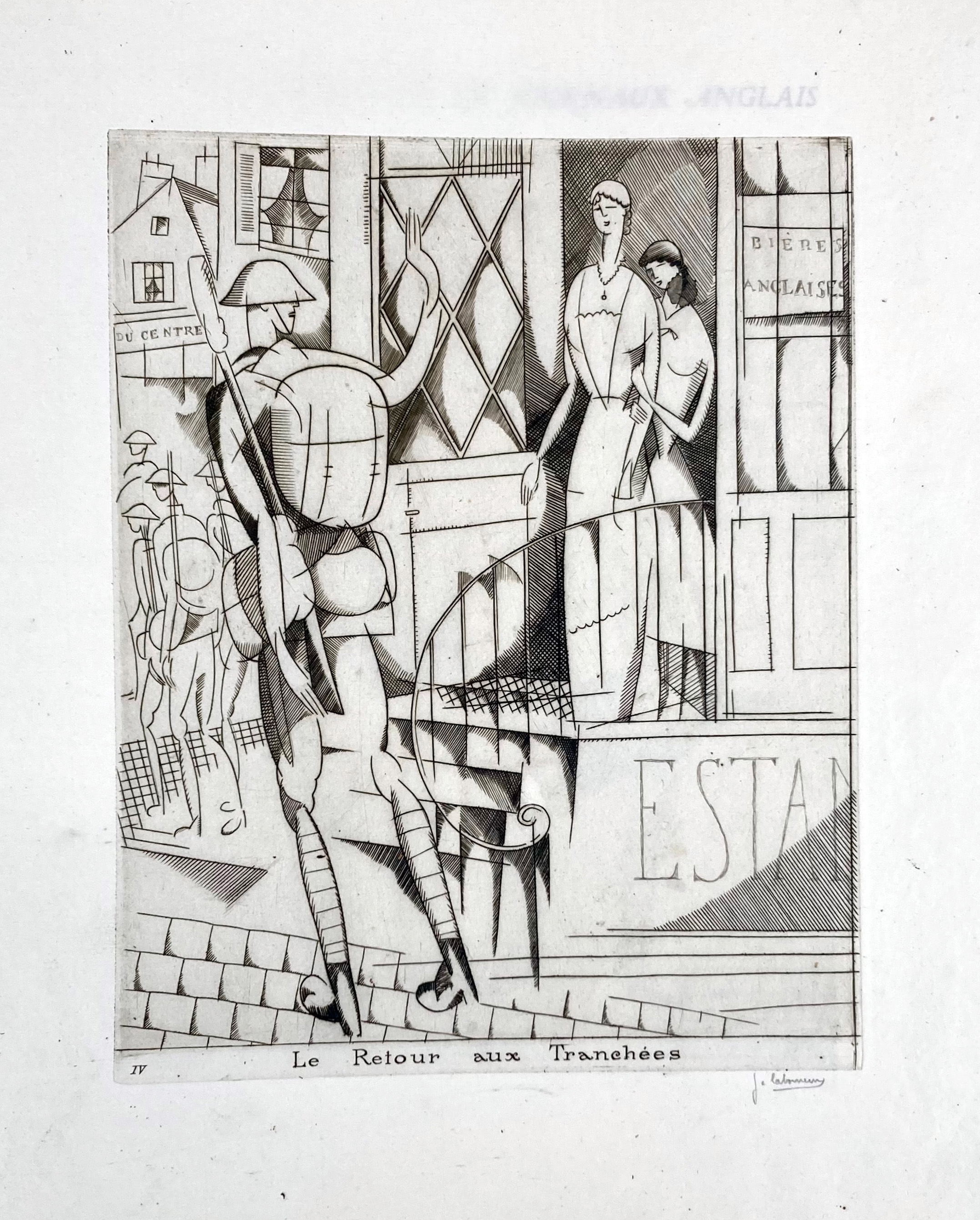 N° 62 of the limited & numb. edition of 120, all prints signed by the artist, colophon signed by artist & author. - Jean-Émile Laboureur (1877-1947), born in Nantes, went to Paris to study law but turned to print-making. With the advent of Cubism he developed his own distinctive style with its sparse lines and elongated figures. In 1914 he became an interpreter to the 12th Division of the British Expeditionary Force in France and spent much of his time sketching, producing these light-hearted but affectionate depictions of the British at war. After WWI he worked mostly as an illustrator of literary works. He wrote several books and articles about the art & craft of engraving.€ 1000